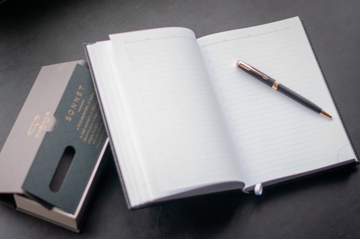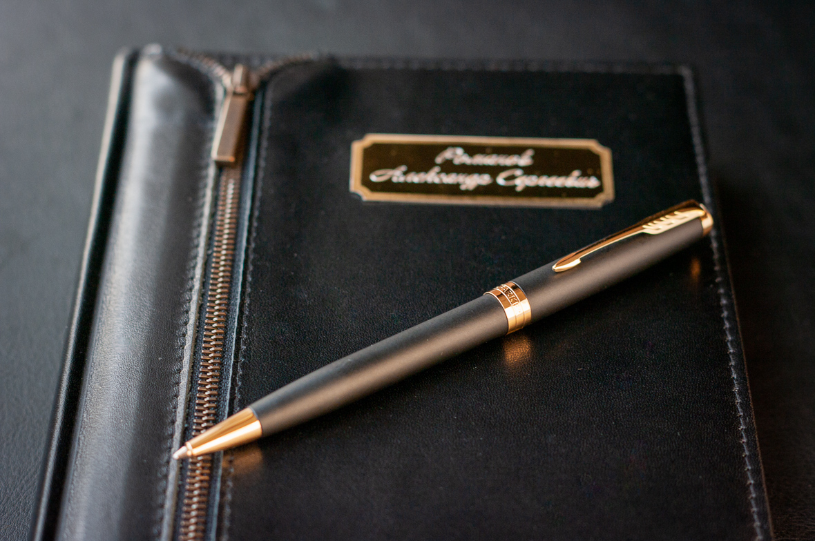 Подарочный набор VIP Ежедневник и ручка Parker Sonnet Matte Black GT от официального дилера Parker в Хабаровске. Вы можете дополнительно заказать гравировку, которая подчеркнет Вашу оригинальность и придаст памятность статусному подарку. Все ручки Паркер поставляются в фирменном футляре.