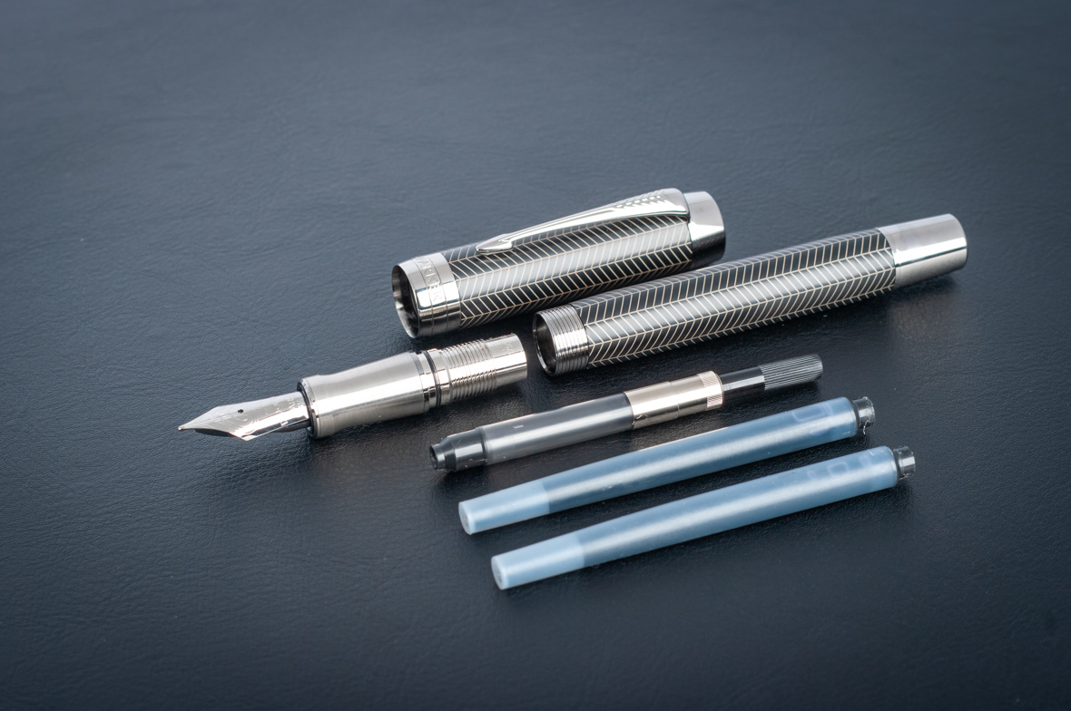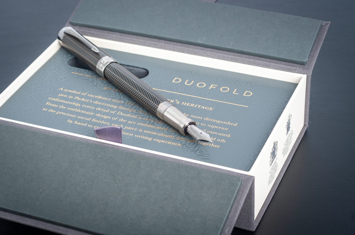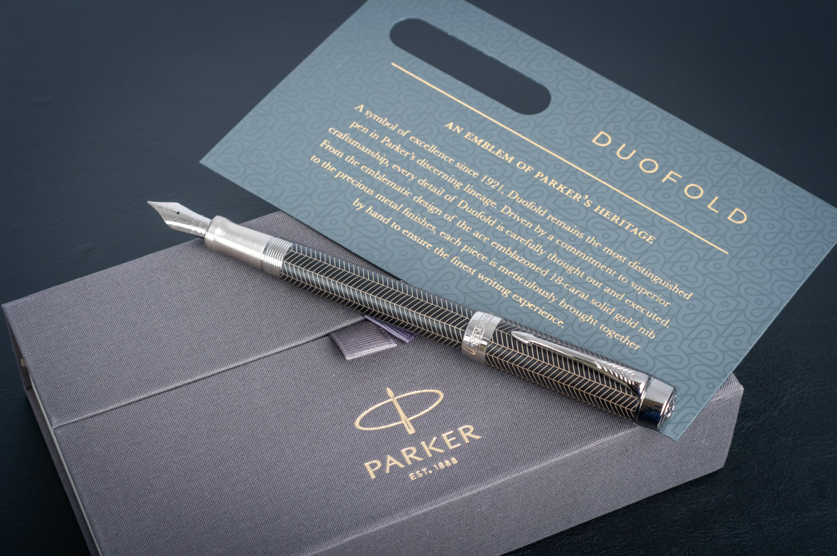 Перьевая ручка Parker Duofold Prestige Centennial Black Chevron CT от официального дилера Parker в Хабаровске. Вы можете дополнительно заказать гравировку, которая подчеркнет Вашу оригинальность и придаст памятность статусному подарку. Все ручки Паркер поставляются в фирменном футляре.